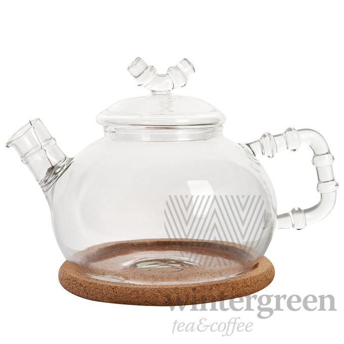 Чайник из жаропрочного стекла "Бамбук" с пружинкой-фильтром в носике и пробковой подставкой, 630 мл., дно d100 мм.