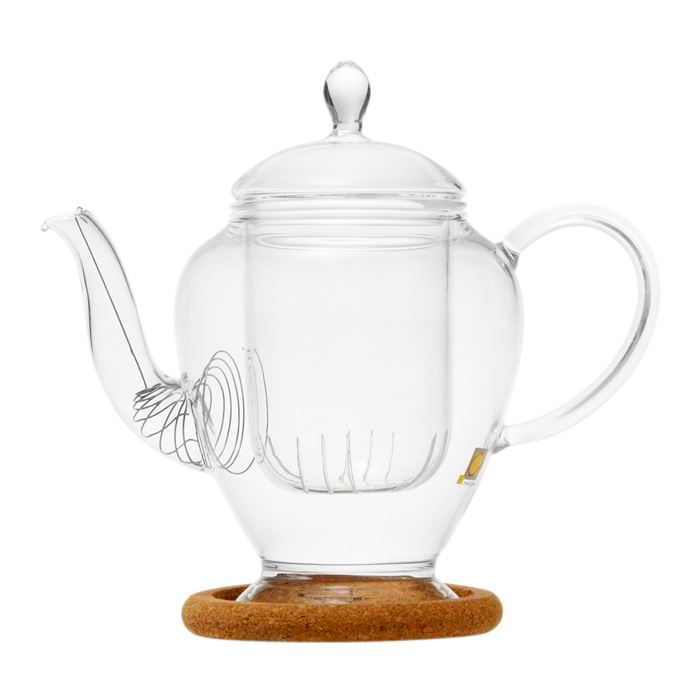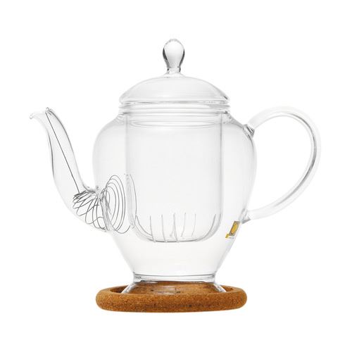 Чайник из жаропрочного стекла с заварочной колбой, пробковой подставкой и пружинкой-фильтром в носике. Объем 320 мл., дно d65 мм.