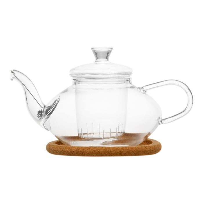 Чайник из жаропрочного стекла с с заварочной колбой, пробковой подставкой и пружинкой-фильтром в носике.Объем 500 мл., дно d70 мм.
