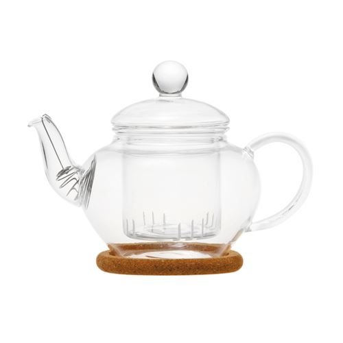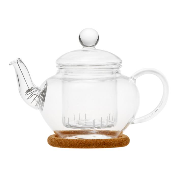 Чайник из жаропрочного стекла с заварочной колбой, пробковой подставкой и пружинкой-фильтром в носике. Объем 350 мл., дно d50 мм.