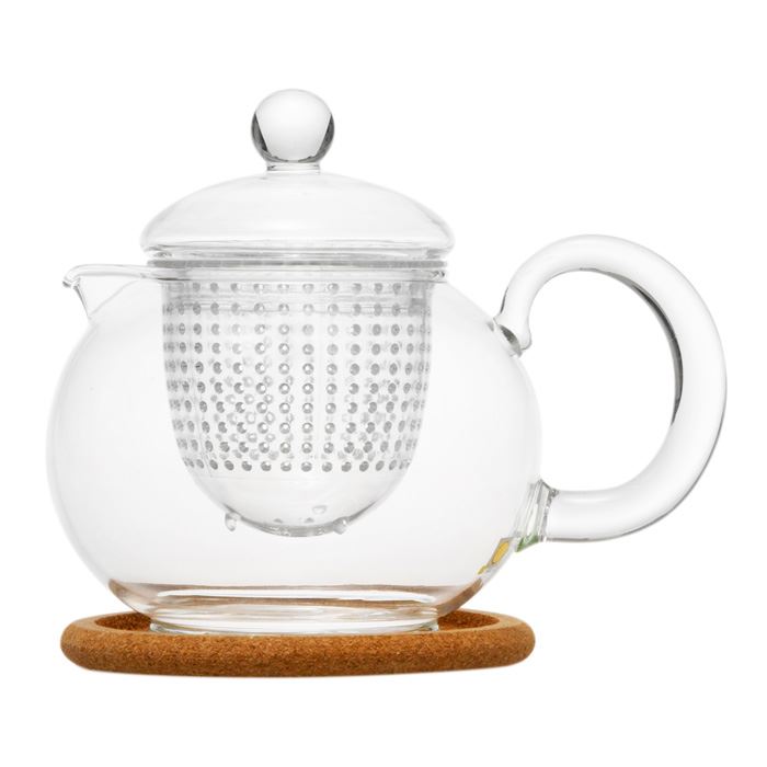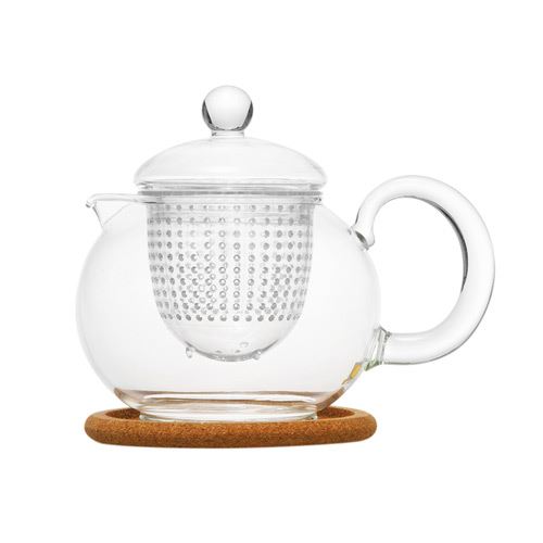 Чайник из жаропрочного стекла с заварочной пластиковой колбой и пробковой подставкой.Объем 800 мл., дно d75 мм.