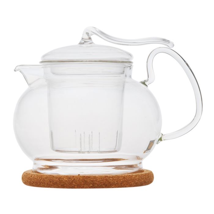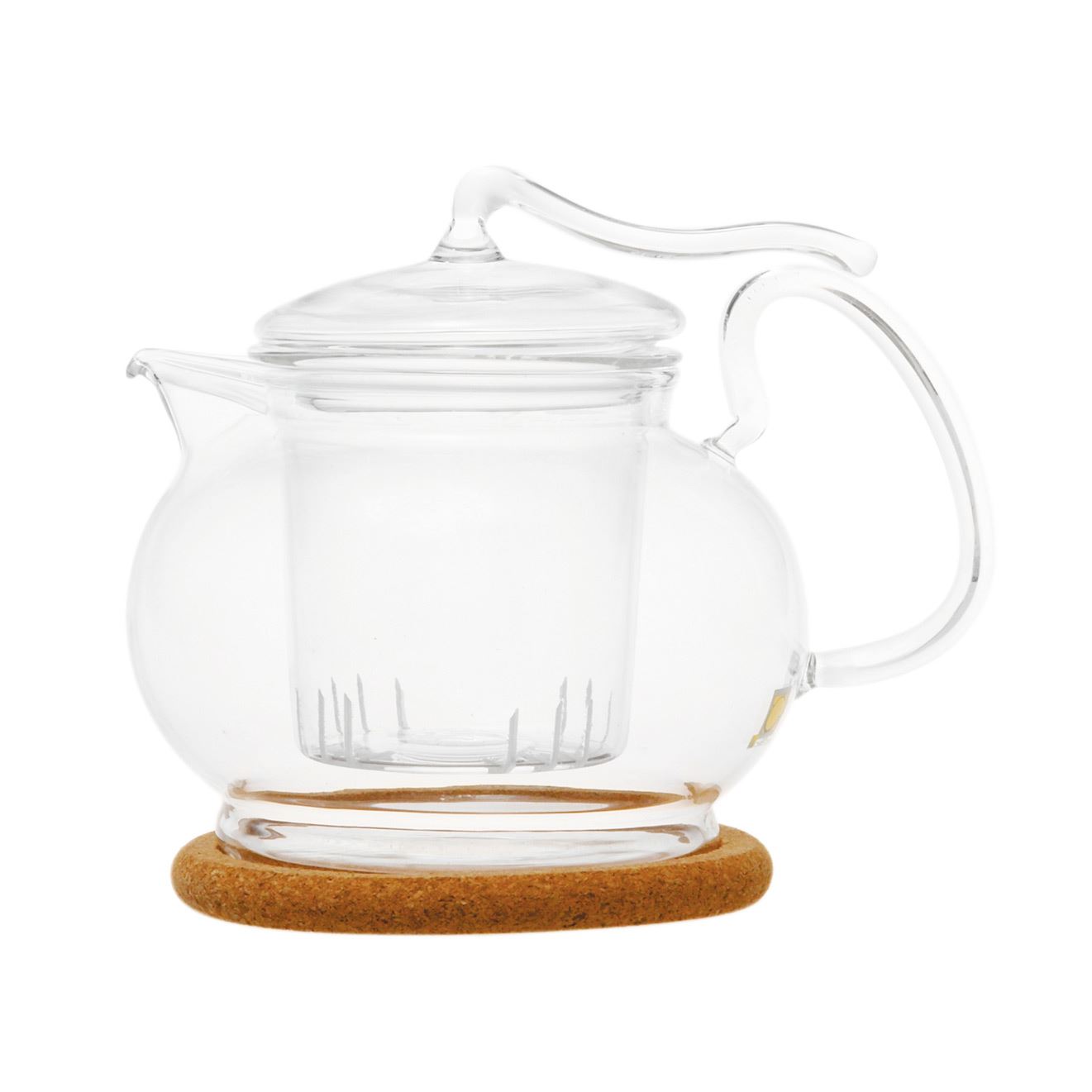 Чайник из жаропрочного стекла с заварочной колбой и пробковой подставкой.Объем 600 мл., дно d85 мм.