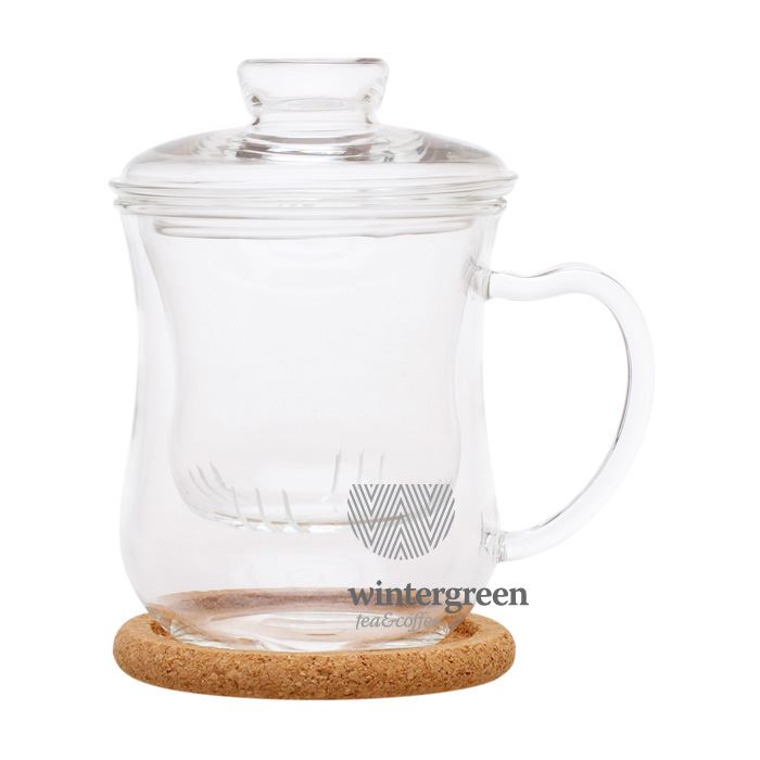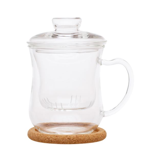 Чашка из жаропрочного стекла с заварочной колбой, крышкой и пробковой подставкой. Объем 300 мл.